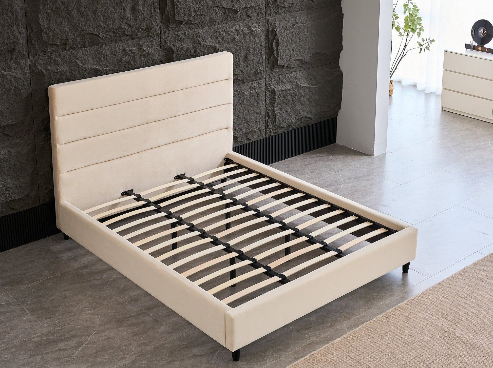 Velvet Headboard Bed Frame Sleek Design, Sturdy Build, No Box Spring Needed